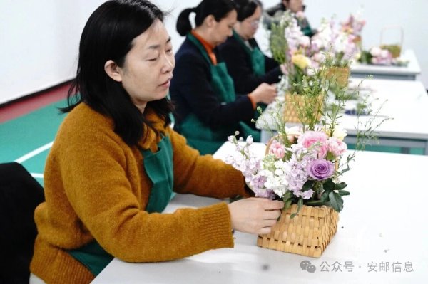 花藝創(chuàng)作區(qū)域則是另一番雅致景象,專業(yè)花藝師現(xiàn)場授課,從花材選擇、色彩搭配到造型設(shè)計、修剪技巧,都進行了細致講解和耐心指導(dǎo)。女職工們化身“花藝師”,手持鮮花專注創(chuàng)作,在修剪、搭配、插制的過程中,充分發(fā)揮想象力與創(chuàng)造力。玫瑰嬌艷、康乃馨溫婉、洋甘菊清新,經(jīng)過大家的巧手裝扮,一束束錯落有致、生機盎然的花藝作品新鮮“出爐”?,F(xiàn)場花香四溢,與包元宵區(qū)域的歡聲笑語交織在一起,構(gòu)成了一幅溫馨和諧、兼具煙火氣與雅致感的郵政職工團圓畫卷。