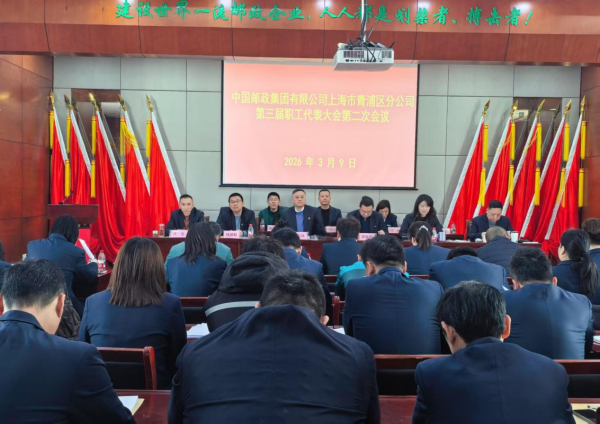 2026年3月9日,中國(guó)郵政集團(tuán)有限公司上海市青浦區(qū)分公司第三屆職工代表大會(huì)第二次會(huì)議召開。本次大會(huì)以全面貫徹落實(shí)黨的二十大、黨的二十屆歷次全會(huì)精神,認(rèn)真落實(shí)以職工代表大會(huì)為基本形式的企業(yè)民主管理制度,總結(jié)2025年工作,部署2026年任務(wù)。團(tuán)結(jié)動(dòng)員廣大郵政干部職工,為開創(chuàng)青浦郵政高質(zhì)量發(fā)展而努力奮斗。