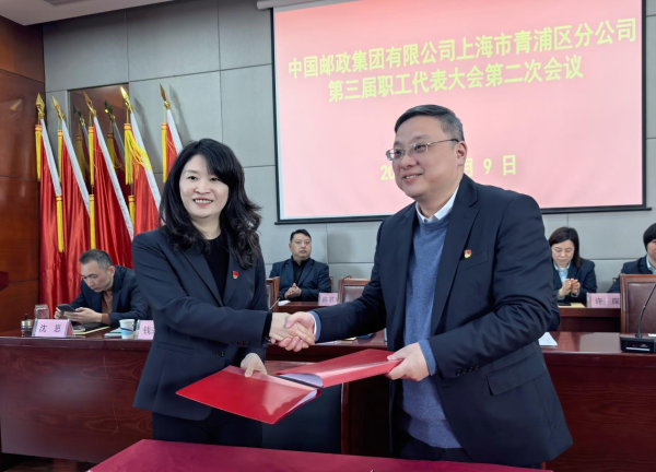 會(huì)上行政方、工會(huì)方共同簽訂了《中國(guó)郵政集團(tuán)有限公司上海市青浦區(qū)分公司2026年度行政與工會(huì)平等集體協(xié)商實(shí)事項(xiàng)目》。