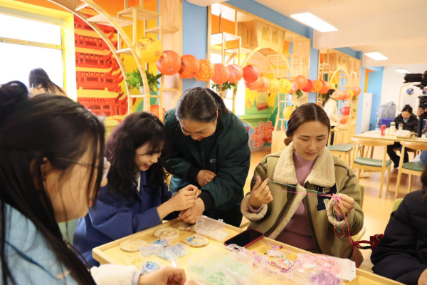 在職工活動中心主會場,集益智、運動、手工、健康于一體的游園活動精彩紛呈。益智區(qū)內(nèi),“你畫我猜”游戲考驗著搭檔間的默契與創(chuàng)意,夸張的動作、會意的眼神引得現(xiàn)場笑聲不斷。運動區(qū)內(nèi),“紙杯投球”“快樂顛球手”等項目活力四射,職工們身手矯健,在輕松有趣的運動中釋放壓力、收獲快樂。手工區(qū)內(nèi),“手繪曼陀羅+非遺漆畫”體驗區(qū)墨彩交融,大家執(zhí)筆描繪,沉浸于色彩與線條的世界,感受非遺文化的獨特魅力;串珠手作臺前,晶瑩的珠子在巧手中化作精美飾品,傳遞著對生活的熱愛與期許。