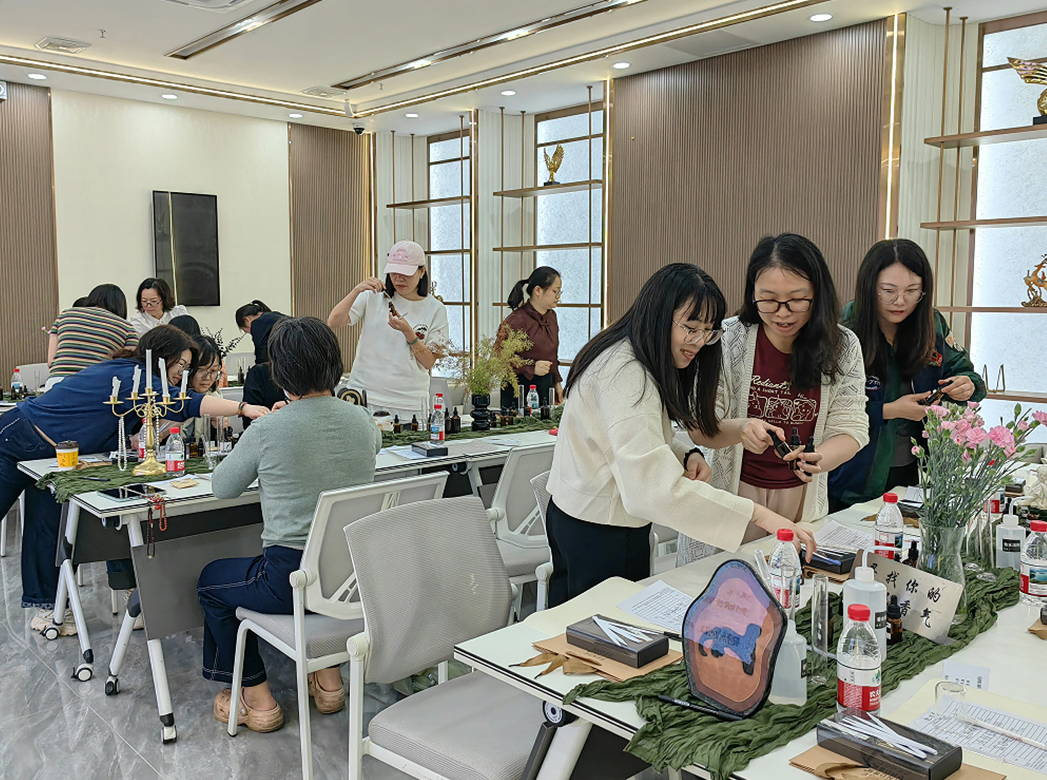 同時(shí),還組織職工在江海財(cái)富中心體驗(yàn)芳香精油調(diào)香活動(dòng)?;顒?dòng)現(xiàn)場(chǎng),專(zhuān)業(yè)老師講解香水起源與精油知識(shí),開(kāi)展趣味有獎(jiǎng)問(wèn)答調(diào)動(dòng)大家的參與熱情。隨后,職工們親手挑選精油、調(diào)配專(zhuān)屬香水,在動(dòng)手創(chuàng)作中舒緩身心、樂(lè)享愜意時(shí)光,進(jìn)一步增進(jìn)了彼此交流。