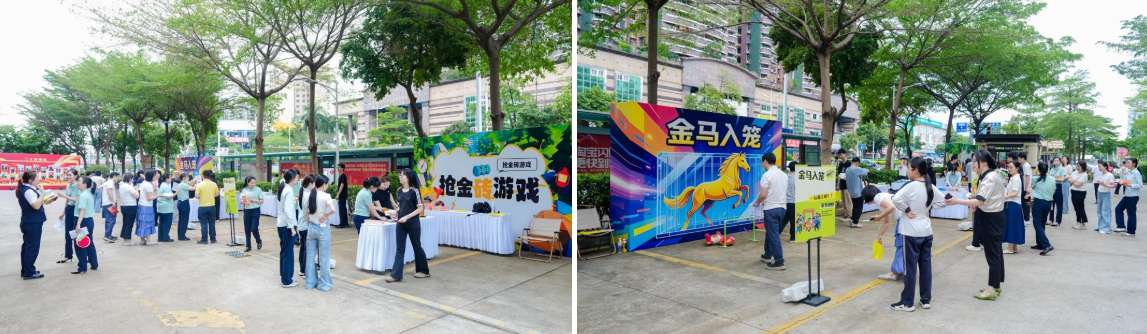 游戲區(qū)趣味盎然,走貓步、鏟金幣輕松解壓,搶金磚、眼疾手快、金馬入籠對(duì)戰(zhàn)熱烈。工會(huì)為獲勝者準(zhǔn)備擦手巾、防曬冰袖、洗手液、眼罩等實(shí)用好禮,趣味互動(dòng)高潮迭起,全員踴躍參與、樂在其中。
