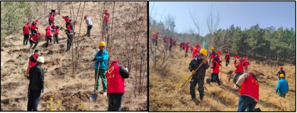 活動現(xiàn)場,在專業(yè)林業(yè)人員的指導(dǎo)下,職工們迅速分組,按照 “挖坑、放苗、培土、澆水” 的標(biāo)準(zhǔn)化流程有序進行。有的揮鍬挖坑,有的扶正培土,有的提水澆灌,有的夯實土壤,大家分工明確,默契配合,每道工序都有條不紊,到處都是一派熱火朝天的勞動景象。經(jīng)過一上午的辛勤付出,120余棵新栽樹苗整齊排列,昂然挺立,為南山生態(tài)園增添了濃濃生機。